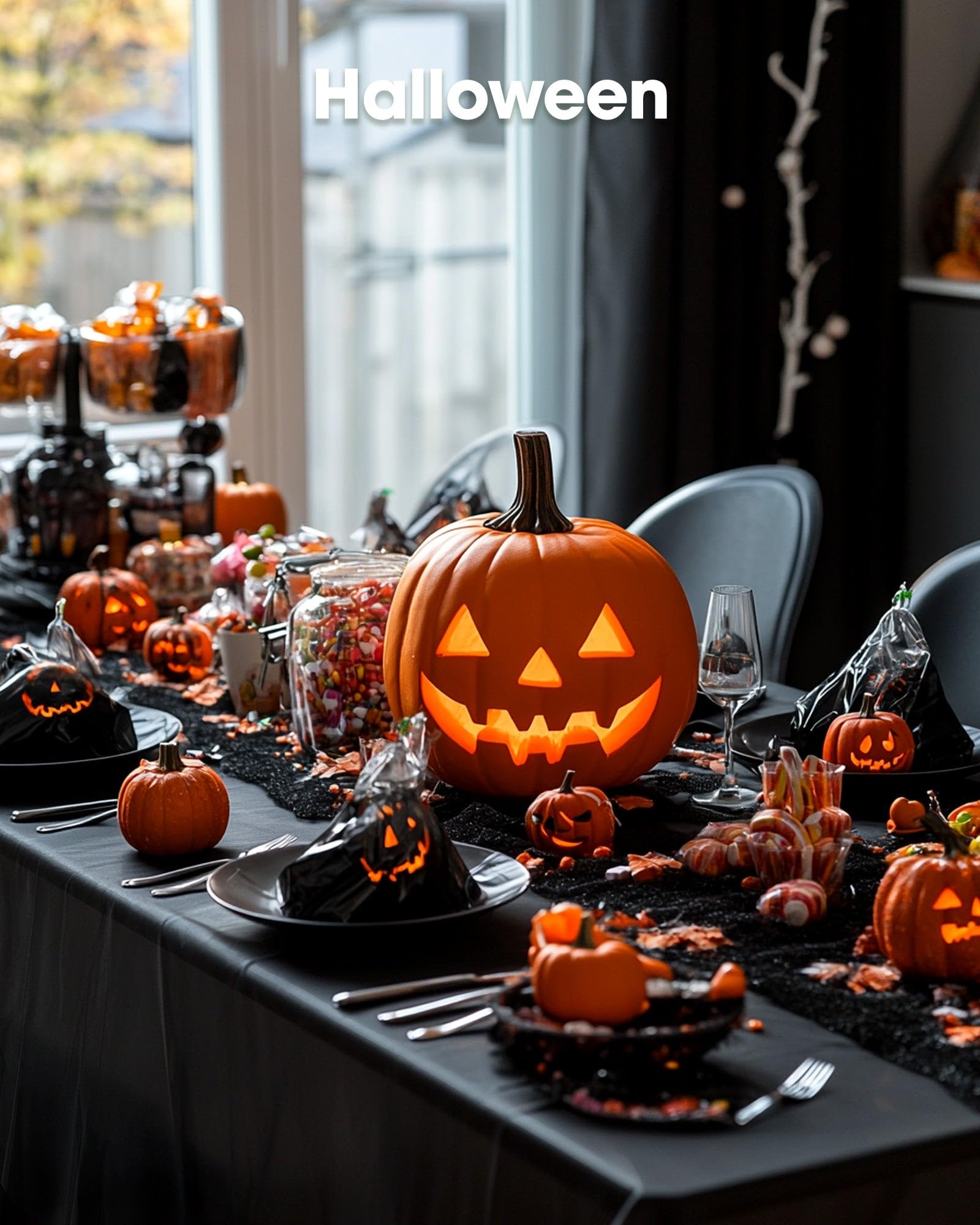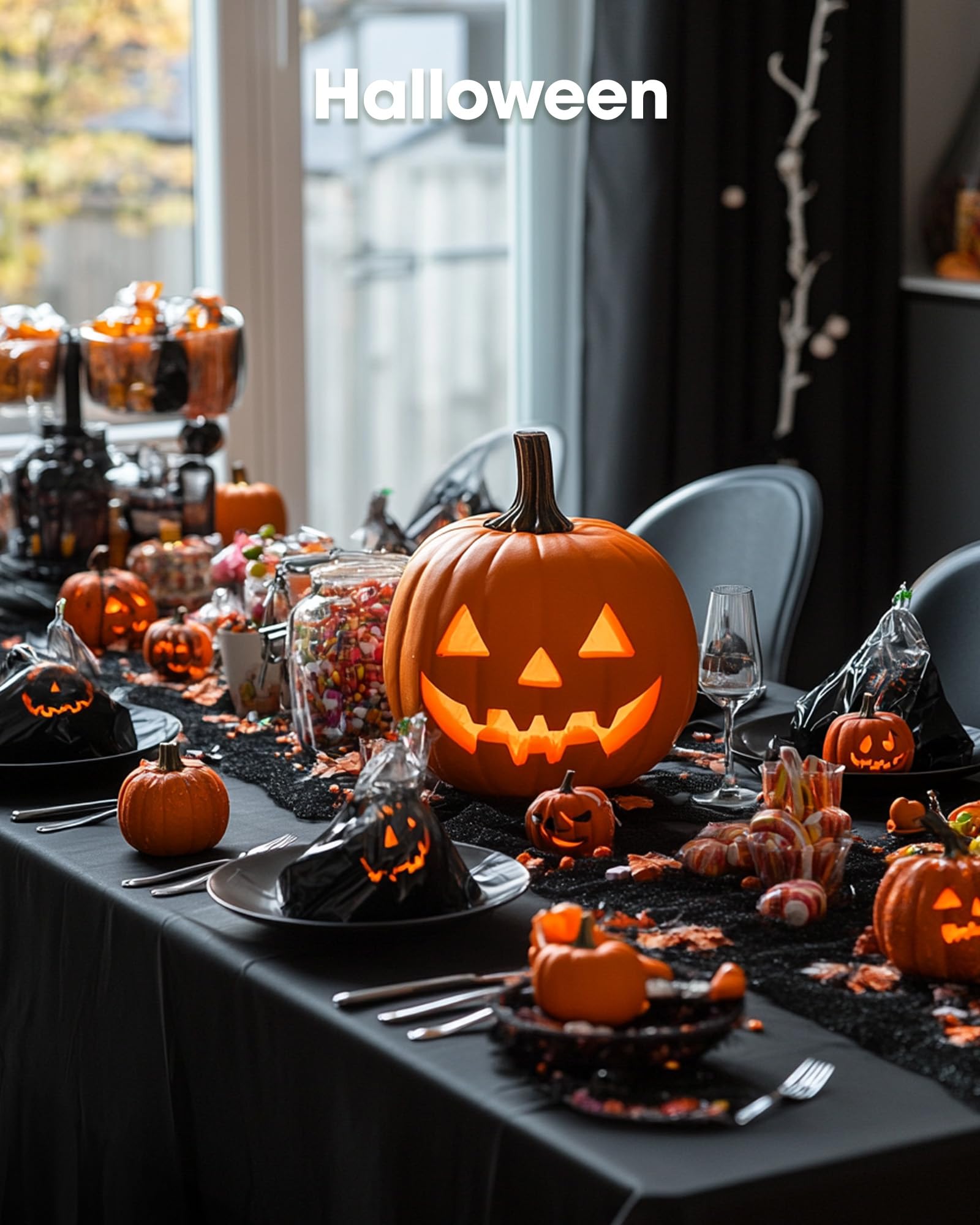 Pureegg Plastic Table Cloth Disposable 10 Pack, 54 x 108 Inch Table Cloths, Halloween Party Decorations, Summerween Decor, Halloween Tablecloths, Rectangle, Plastic Cover, Leakproof & Sturdy, Black